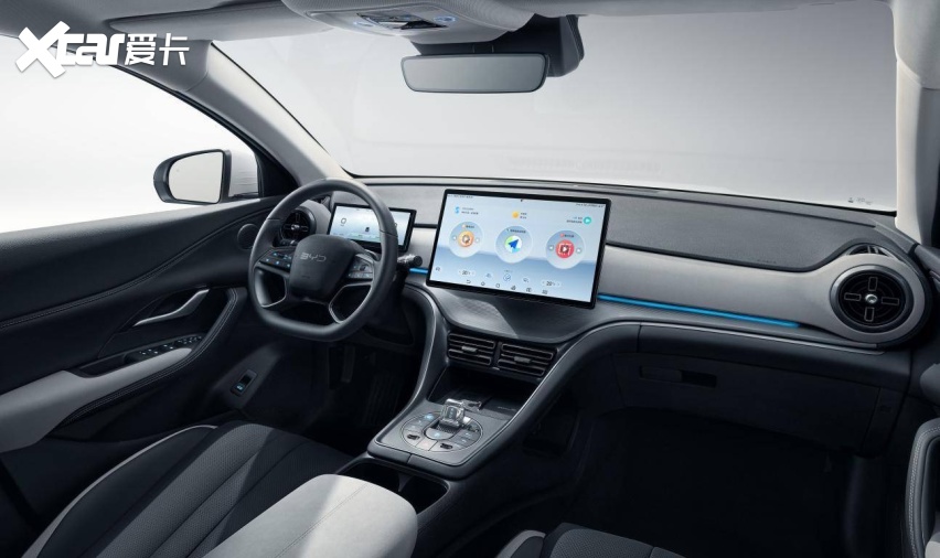 新车还采用了比亚迪新新一代方向盘设计理念,整体视觉效果更显简约和高级。换挡区域为圆型设计,水晶挡杆周围配备了常用的物理按键。