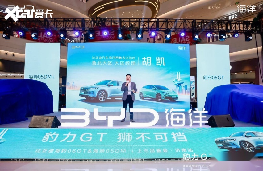 活动伊始,比亚迪汽车海洋网鲁吉辽战区鲁北大区大区经理胡凯登台致辞,与大家伙儿一起来分享了比亚迪海洋在新能源汽车领域的傲人成绩和美好展望,同时,鲁北一区运营经理刘毅也为大家详细讲解了海豹06GT和海狮05DM-i的先锋科技与颠覆实力。